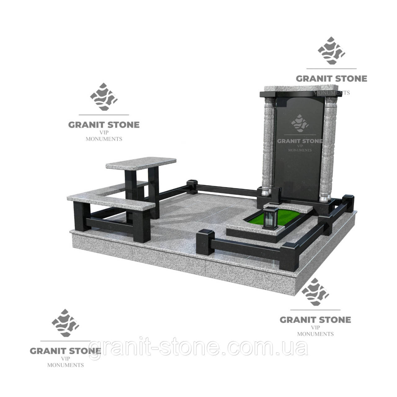Гранітний пам ятник з овальним фото з чорного та сірого граніту