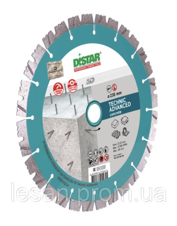 Круг алмазний Distar Technic Advanced 230 мм сегментний диск для бетону та цегли для болгарки (УШМ)